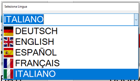 Dal bottone Cambia Lingua è possibile selezionare la lingua con cui verranno visualizzate le varie label, messaggi e voci di ogni maschera, vedremo in seguito come aggiunge, correggere e personalizzare tutte le voci presenti